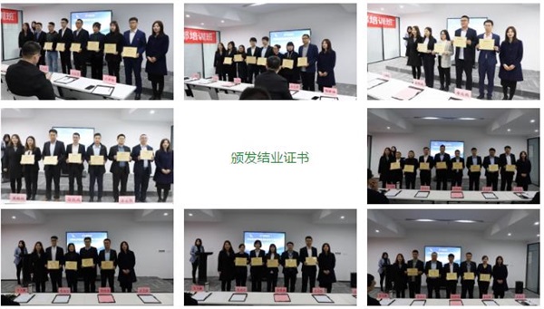 在过去的150多天里,全体学员认真完成了课程学习并通过结业考试,班主任赵欣欣老师、中再环卫杨世娅经理为学员们颁发结业证书。