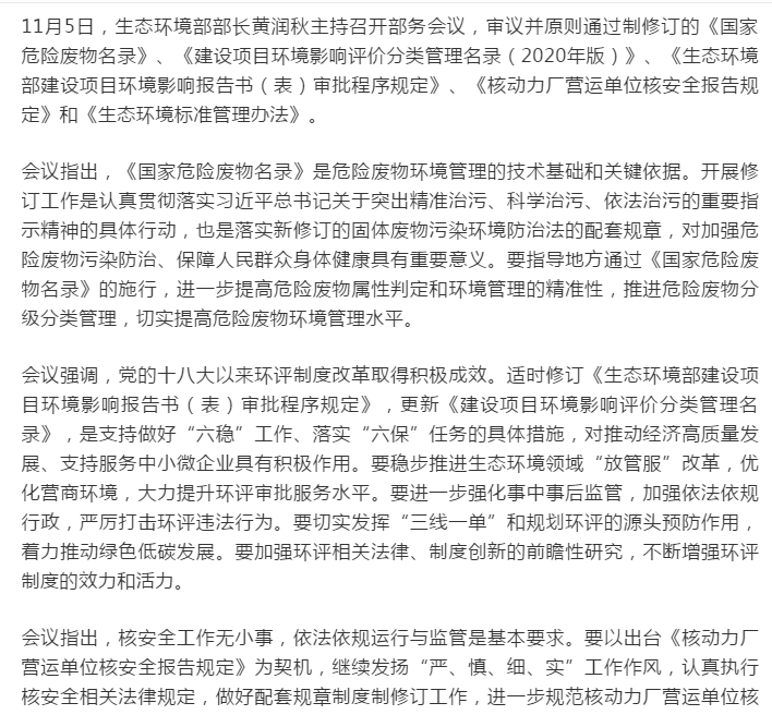 生态环境部:《国家危险废物名录》等5部令修订通过 附新旧版对比